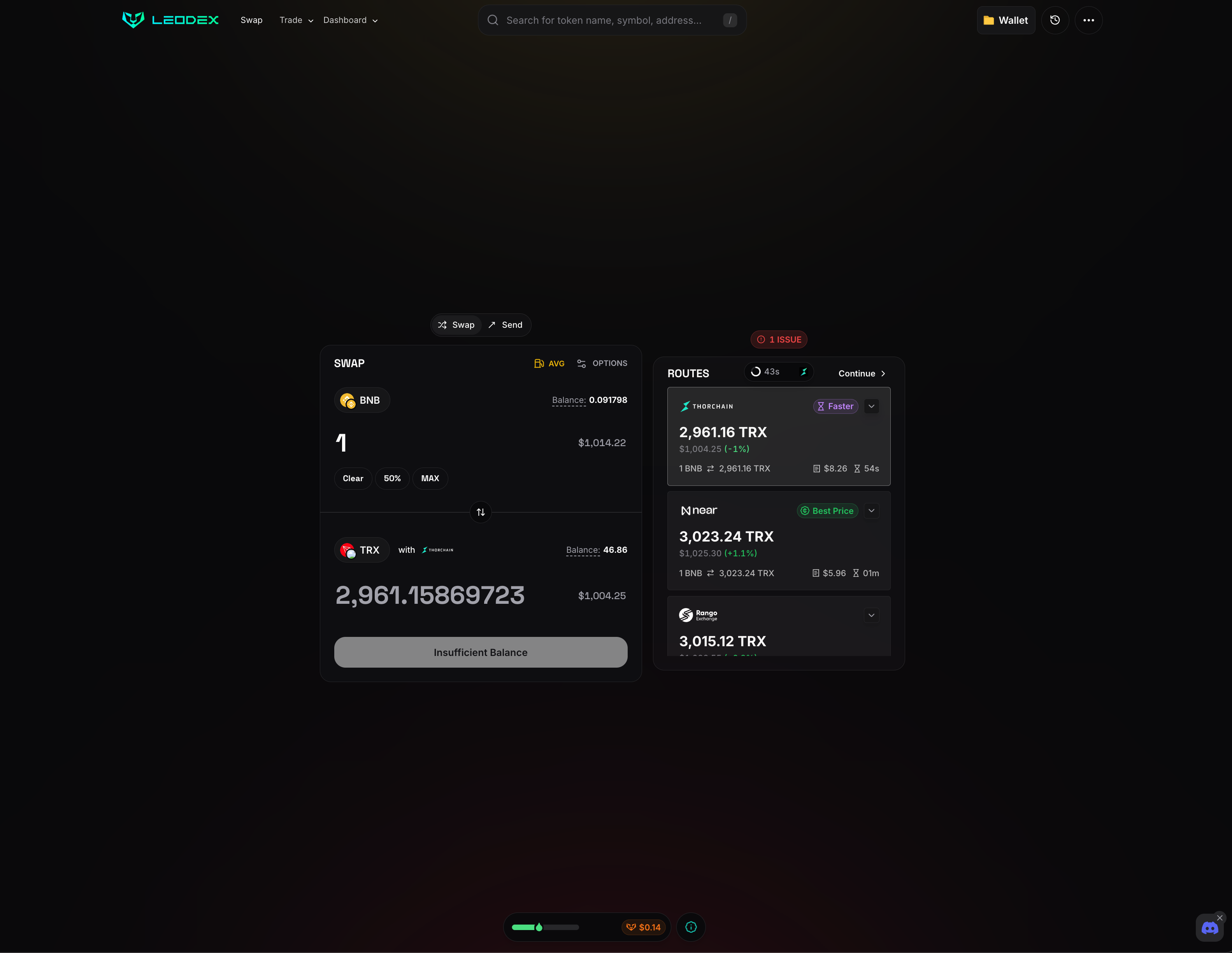 LeoDex is an everything DEX and interfaces with THORChain and other swapping protocols to help users find their best swap.