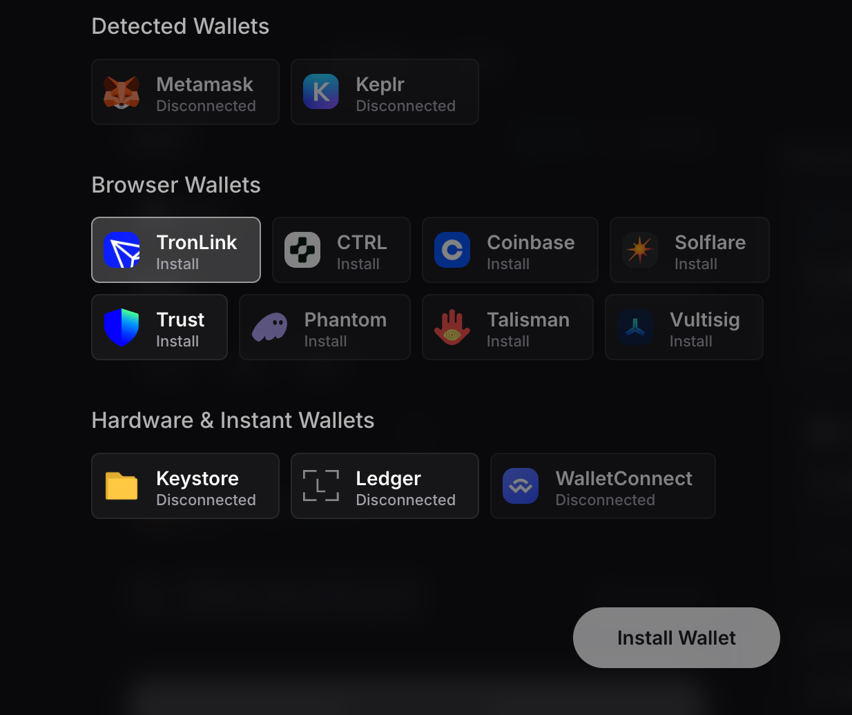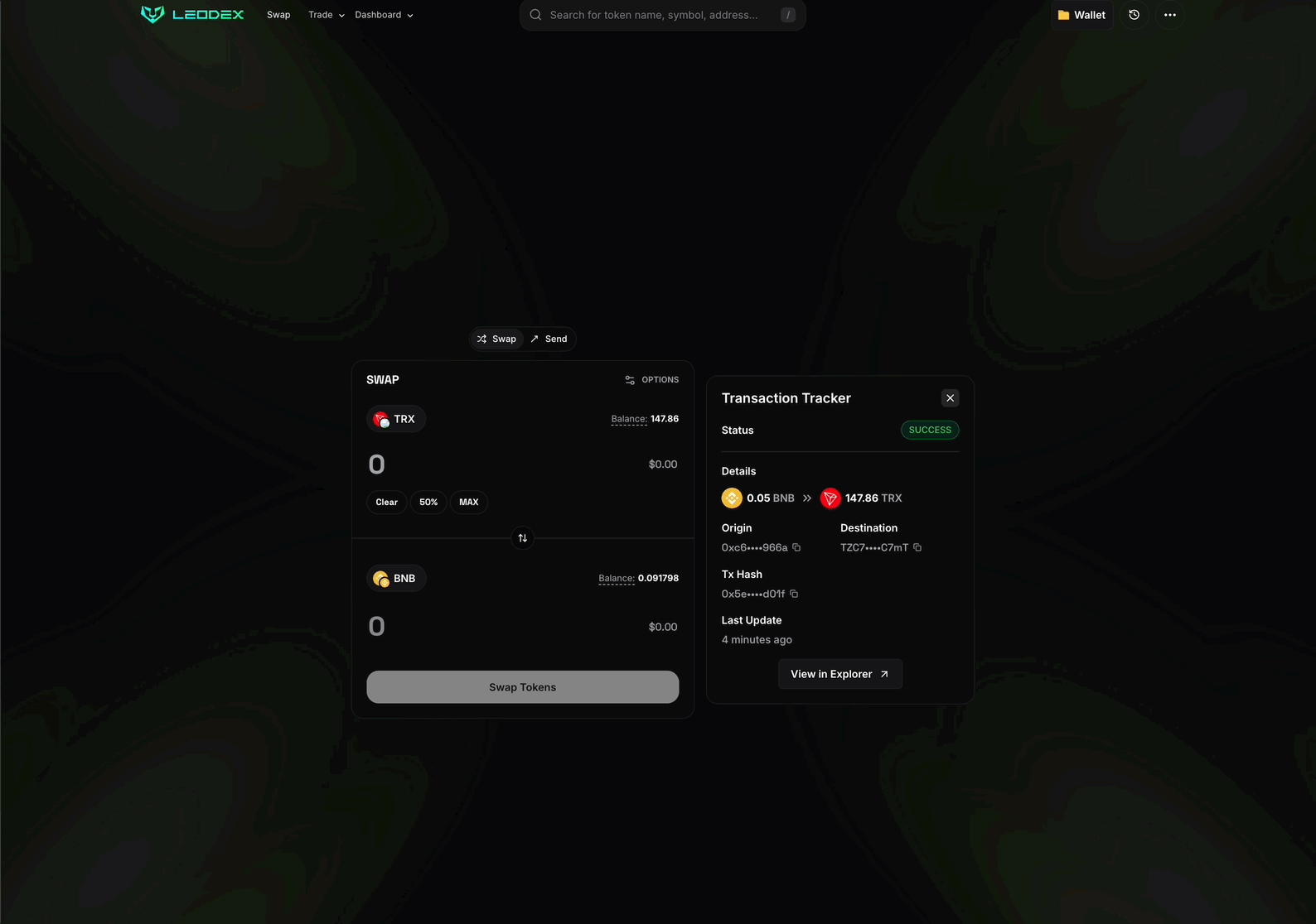 LeoDex supports 500+ crypto wallets including TronLink which is the main wallet for the Tron network.